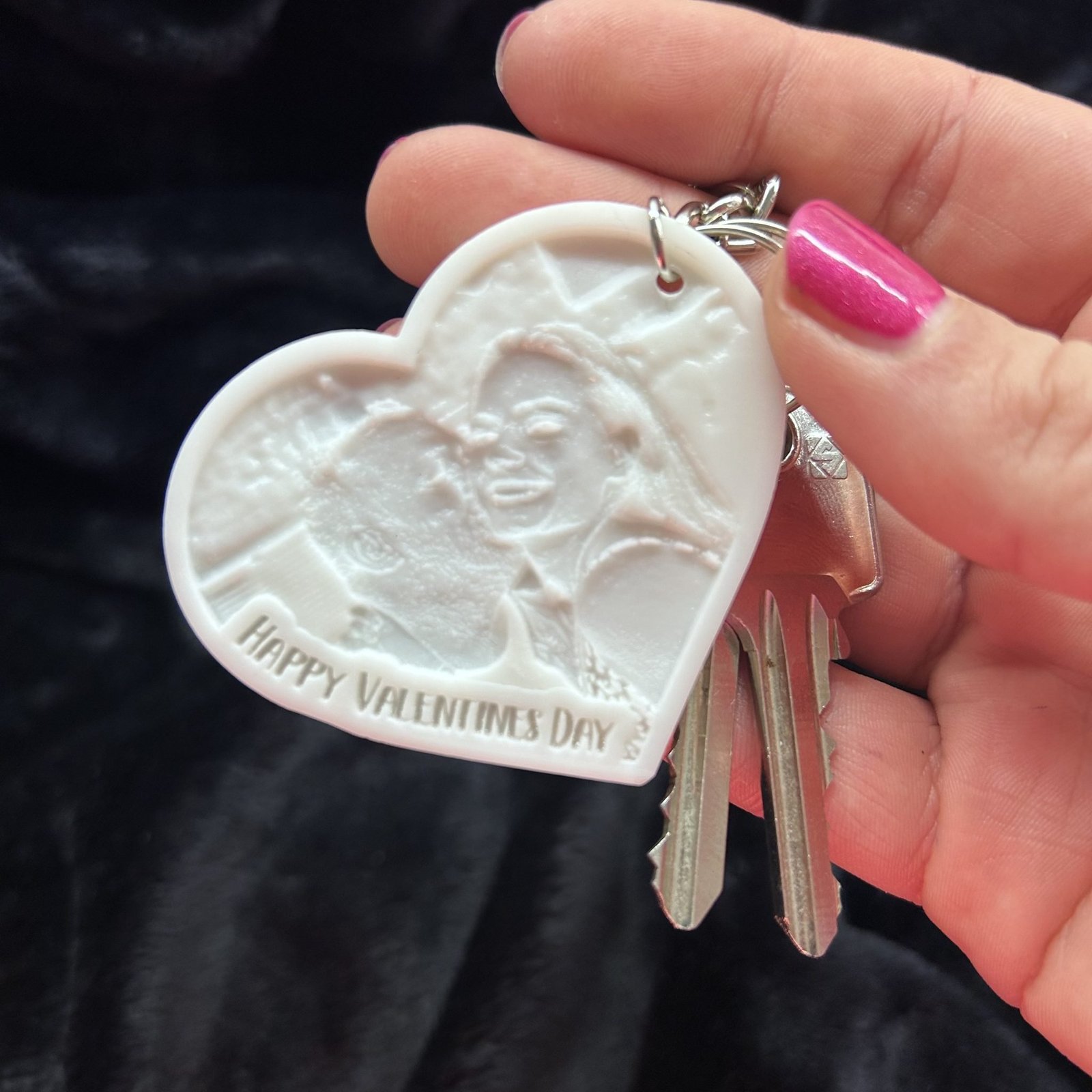 We can turn any photo into a Magic 3D printed keyring, but close-ups photos like selfies work best.