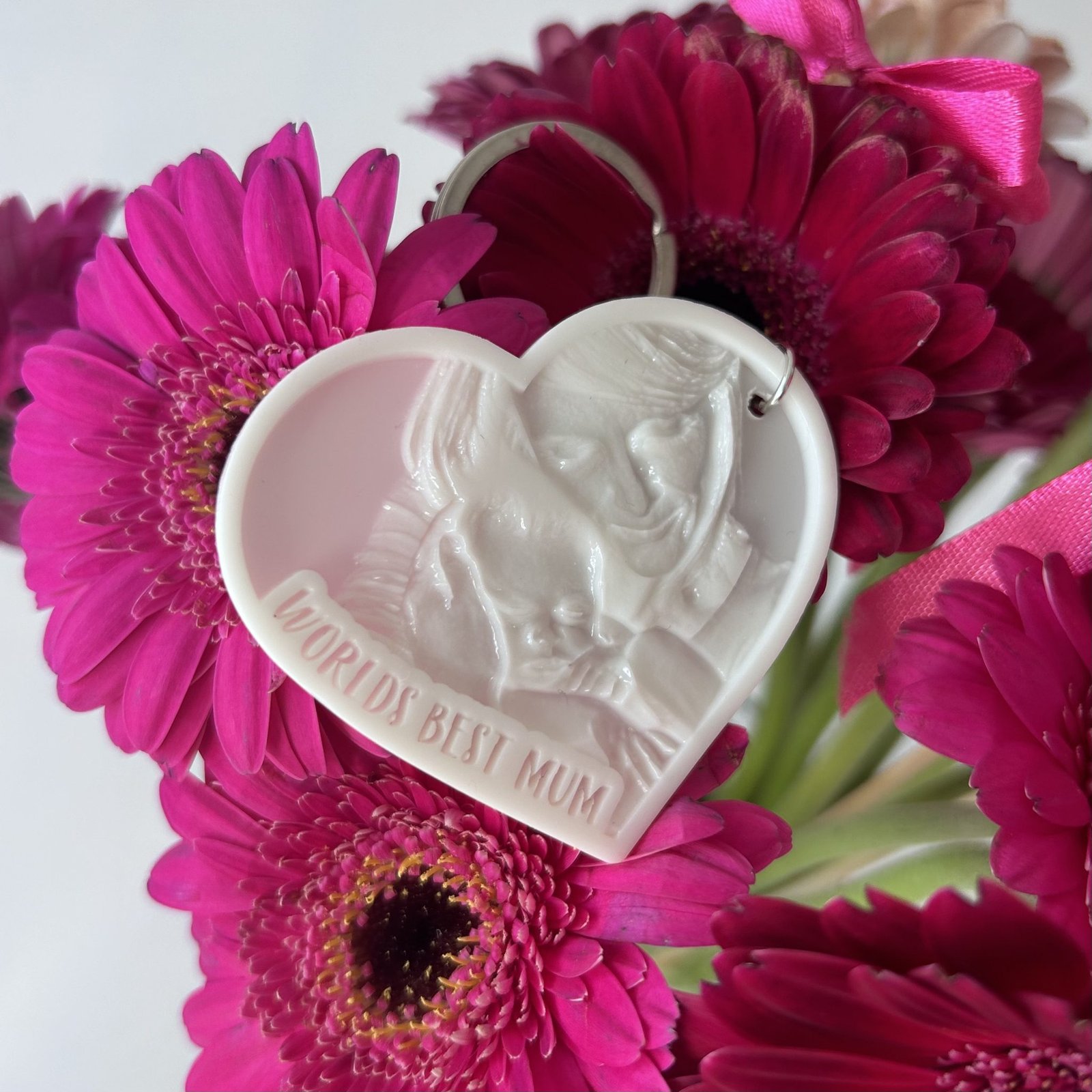 Close up photos and selfies look best on our 3D keyrings