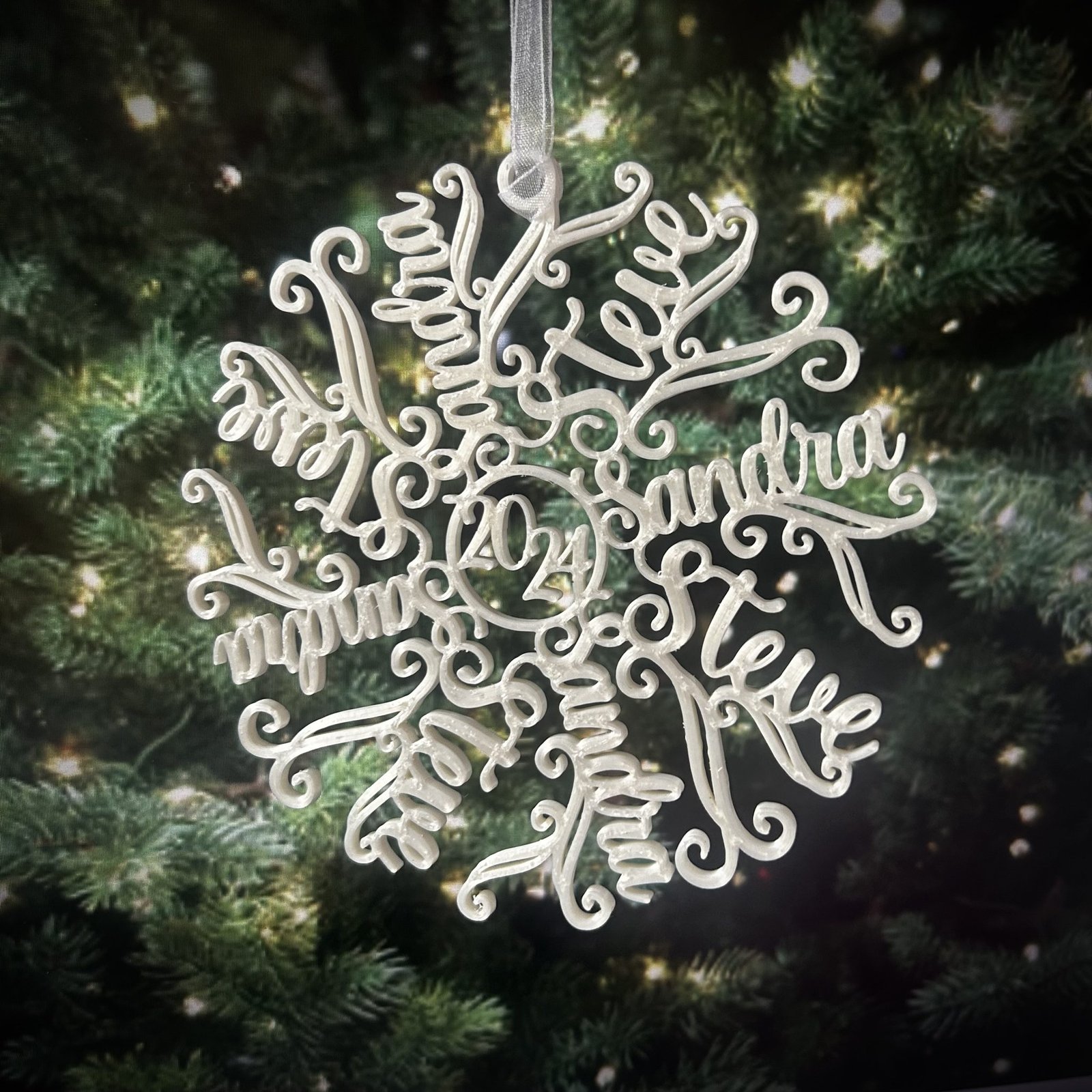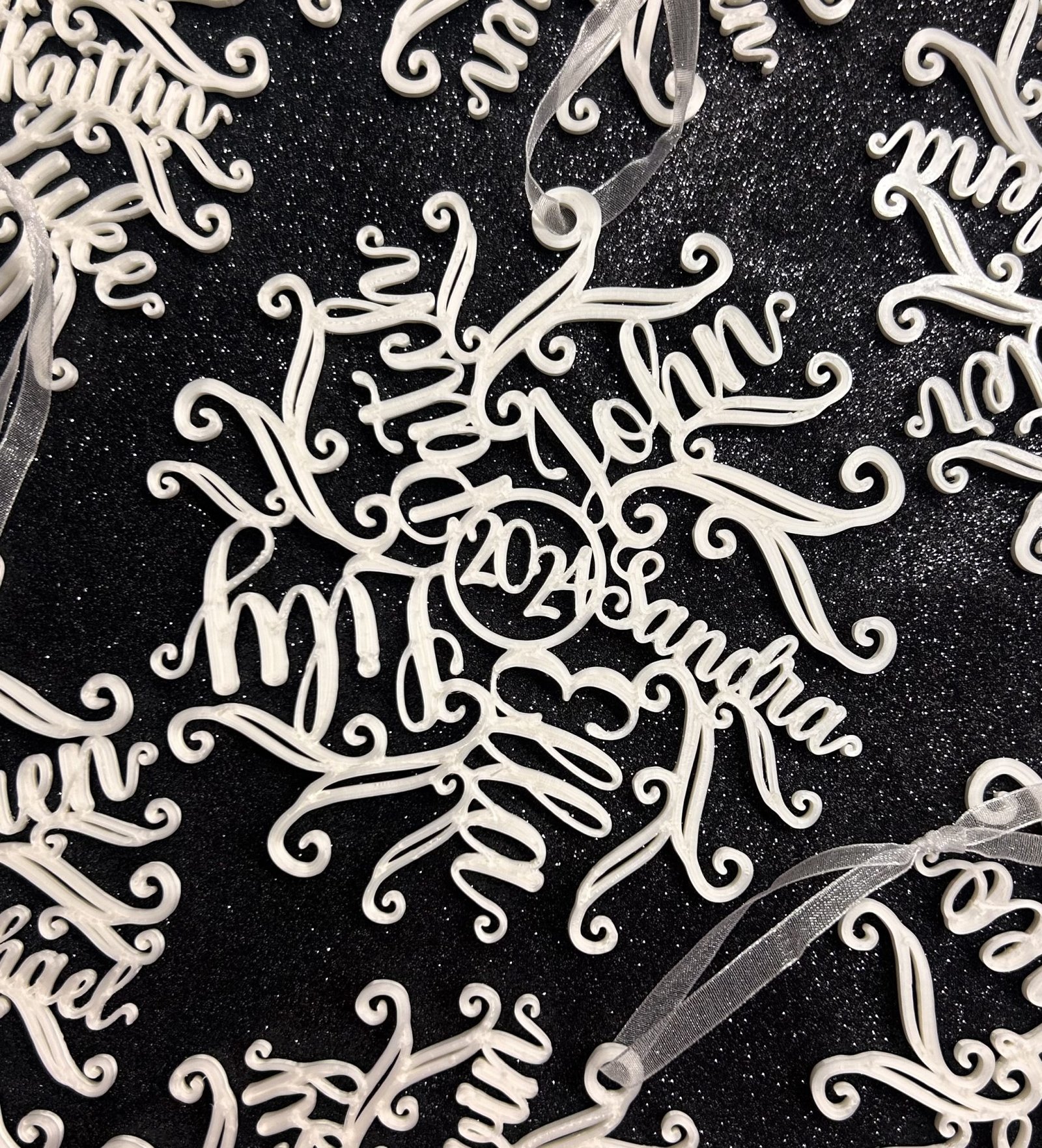 Like every real snowflake, each of our snowflakes is unique and can be personalised with upto ten names.