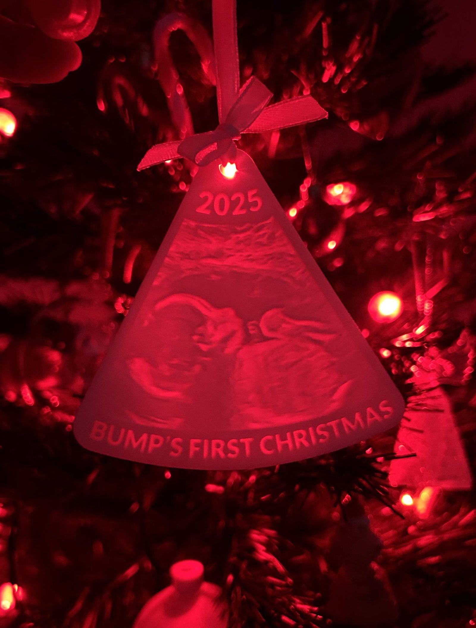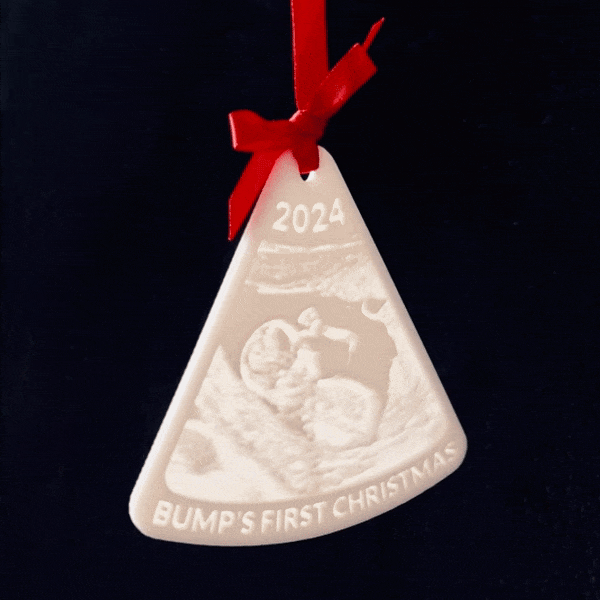 Celebrate the joy of a new life on the way with our Bump’s First Christmas 3D Photo Ornament – a perfect keepsake for expecting parents! At 3DMoments, we transform your precious ultrasound scan into a beautifully detailed 3D relief, capturing the magic of your little one’s first Christmas before they even arrive.